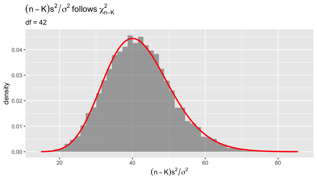 | MLE of \(\sigma^2\) | \(\frac{1}{n}\sum \hat{e}_i^2\) (biased) | sum(resid(mod)^2) / n |