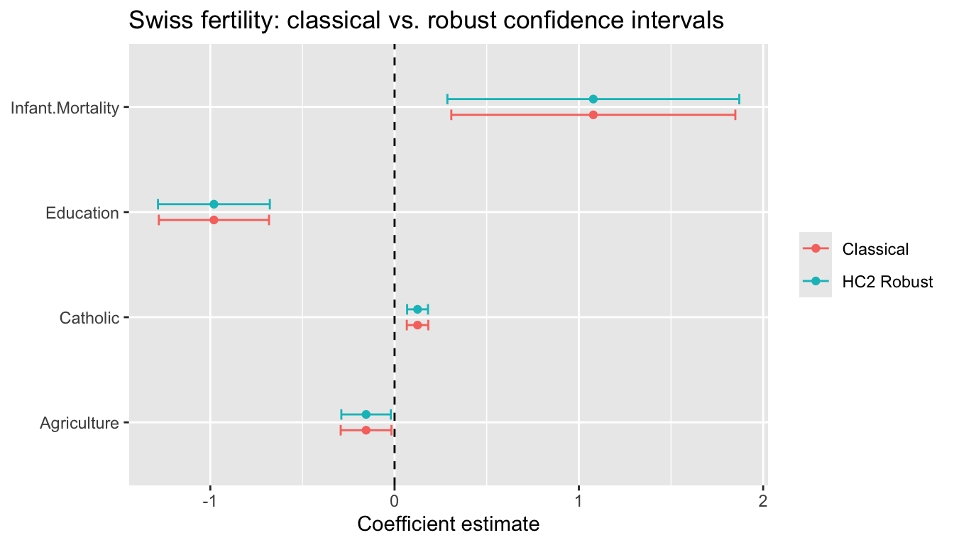 | Robust \(F\)-test | — | linearHypothesis(mod, ..., vcov = vcovHC) |