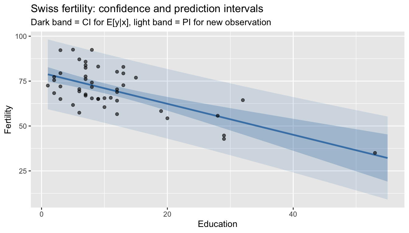 labs(title = "Swiss fertility: confidence and prediction intervals",