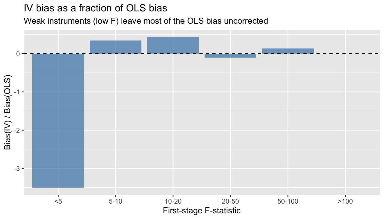 - Is my instrument strong enough? (first-stage F, weak instrument bias)