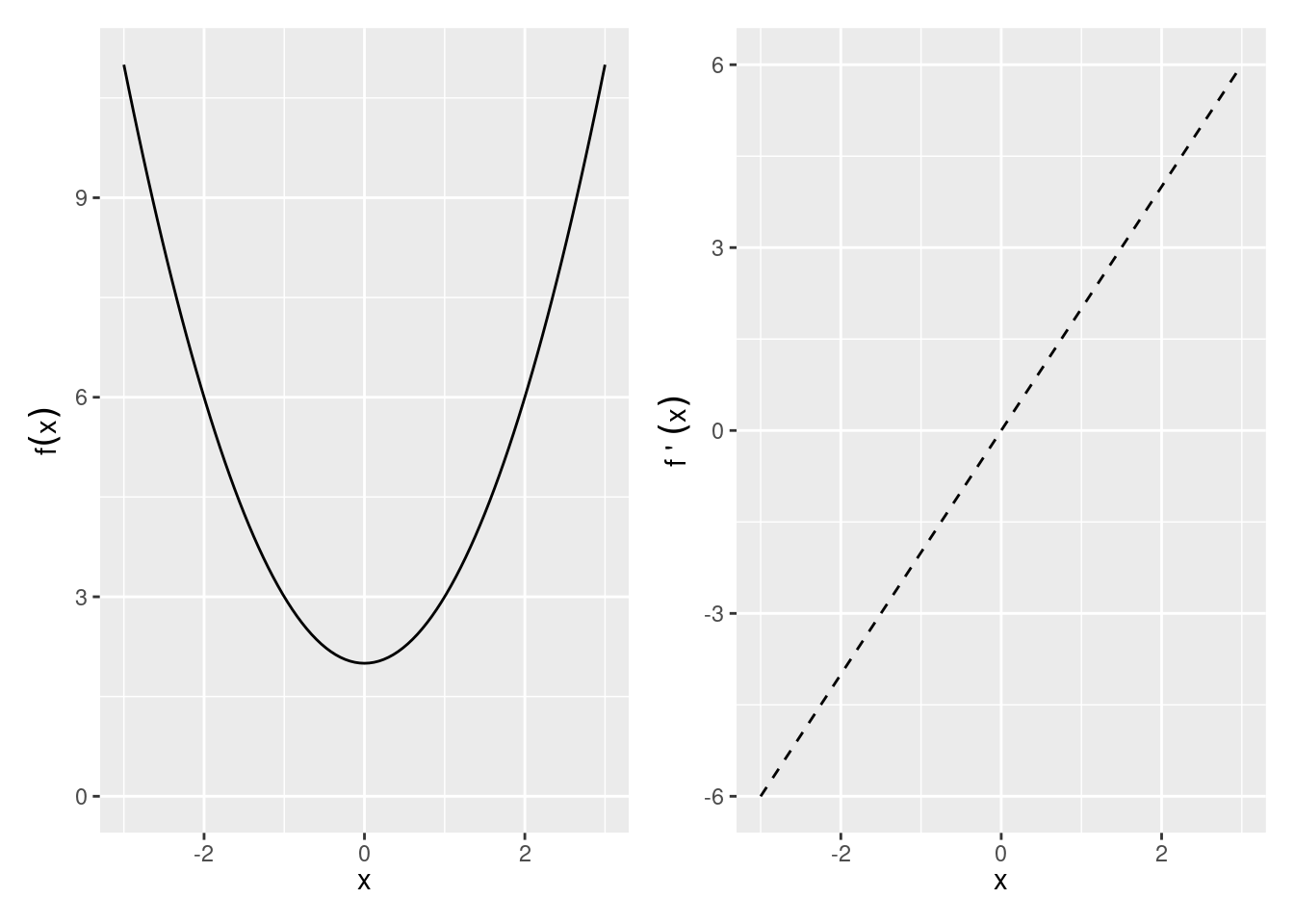 So for example, \(f(x) = x^2 + 2\) and \(f^\prime(x) = 2x\)