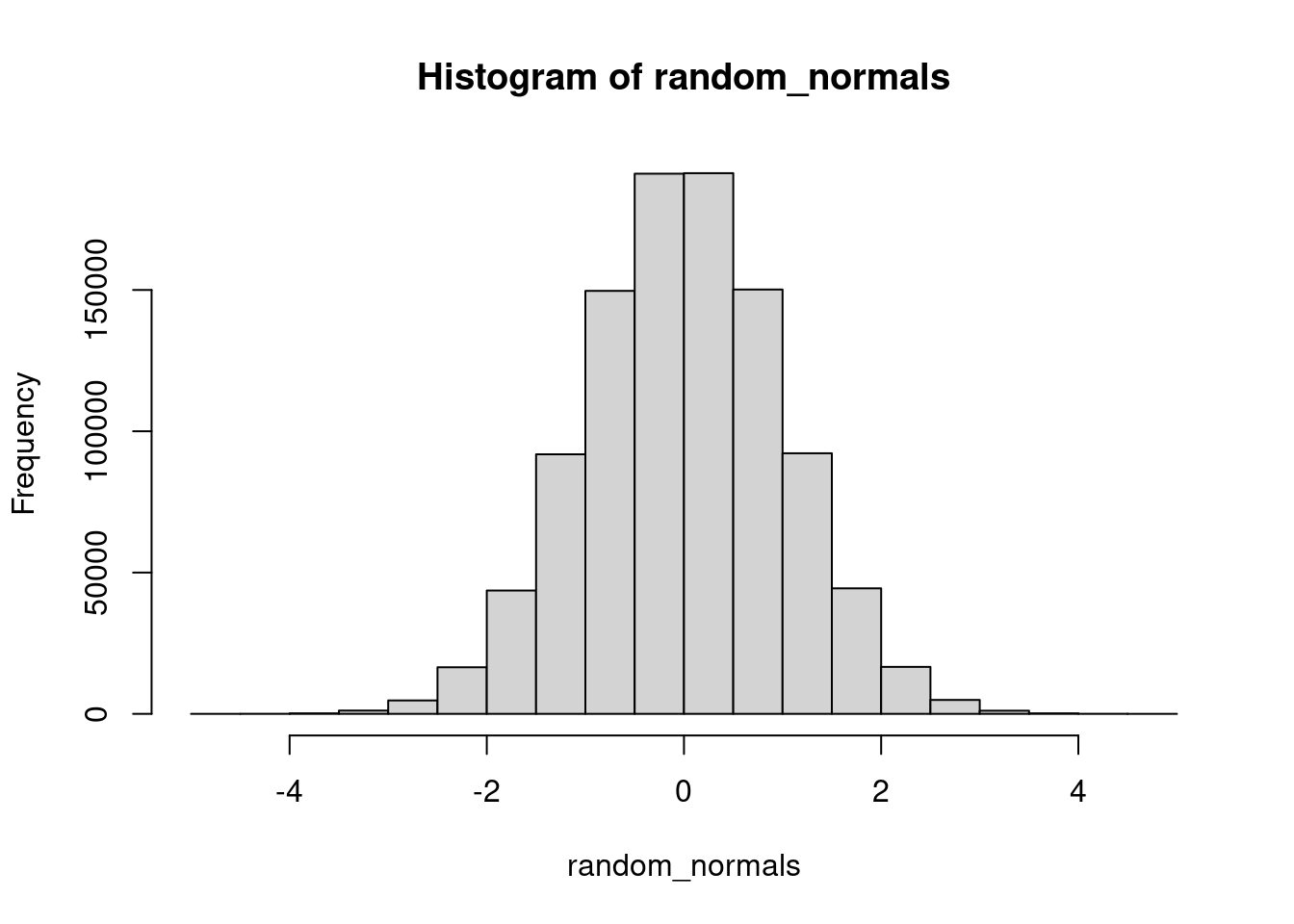random_normals <- rnorm(n=1000000, mean=0, sd=1)
